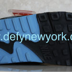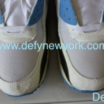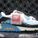 Ok so there are 2 parts first we will look at the original Nike Air Max 90 Laser Blue and then compare and contrast them to a 2006 version that I ID’d through Nike ID at the time (when that option was available, after JD sports released their version of the Laser blues that option disappeared on Nike ID). Comfort wise the shoe felts like heaven on your feet, something about the way sneakers were made in the earlier days gives you a very personal feel when you put them on (can’t say the same for most sneakers now). One thing I do have to say is that up to 2005 Nike has done a relatively decent job of am 90 retro’s, anything after 2005 is really hit or miss, deformed air units and all. These are much lighter than the 2005 HOA infrared release and the JD sport Release as well as more comfortable. Materials are similar, but the construction on the originals was much better, the manufacturing was much more on point. The thick “Nike Air” tag was a great touch, I remember people wearing them around their neckin th 90’s myself included. The mesh used on the originals is also different than that of all the retro’s even the earlier 2000 versions. The mesh used on the originals was very rigid and much more durable. For those of you that don’t know after 2004 Nike switched to more environmentally friendly air units and thus the comfort of the shoe and weight of these retro’s increased, the originals featured an original Nike Air unit the JD sports and the 2006 pair I ID’d did not. Below are the pictures from the DeFY. New York Vault. Our friends over at vintageheatblogspot are the only ones authorized to use the pictures from our vault on this shoe. In addition below is a video that will give you a more in depth look at the shoe.