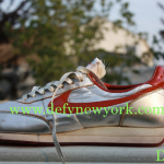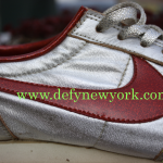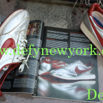 This has to be one of the most interesting Nike sneakers ever produced. At a time where most people were thinking inside the box someone at Nike was thinking outside, wayyyyyyy outside the box. Although I have seen some people say that their pairs were from the lat 70’s personally I haven’t seen them. This pair was made in 1982. The shoe was a limited production run, mostly reserved for celebrities, and employees. There was an article in sole collector (as you can see from the pics below) on these and there was an interesting story about a mom and pop owner that had the foresight to order a bunch of pairs. This shoe was an ode to the disco era and definitely made for dancing (look at the bottom of the shoe). I obtained this pair from a former Nike employee that worked at Nike headquarters for over 18 years. He told me some priceless stories about Nike in its earlier days. The number 7 written on the inside Nike label indicates that this was an employee shoe. Notice, these were made in the USA. This was before Nike moved production overseas. I was told at the time, Nike had factories in the USA, Japan, and Taiwan. Nike eventually shut down US manufacturing due to the high number of defective products coupled with tons of bogus work mans comp claims. Japanese production was shut down not because of quality issues (I was told Japan had the lowest return rate) but because of the high cost of manufacturing (during this time Japan’s economy came into its own). This pair, as hard as it is to believe was still wearable when I obtained them. I did limited walking in them and ultimately decided to sell them off, they felt very delicate although the mid soles was solid. The nylon uppers is very very light weight (feels like your wearing a sock with a midsole attached to it). They run snug so if your hunting for a pair go a half size up. Wearable pairs do exist (but are extremely rare). I have to say It would be very very interesting if Nike decided to retro this shoe. Anyhow check out the pictures below from the DeFY. New York Vault, PLUS! Bonus pictures of Mr. David Hasselhoff and Michael Jackson Killin it with the Nike Night Tracks!!!!!!!! (Those two pictures were not taken by DeFY. New York.)