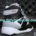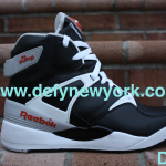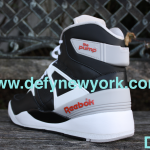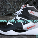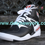 The premier edition Reebok Pump is a sneaker legend. Extra High top, this shoe saw its first retro in 2004 (although it was not retro’d in black/white). Sales of the shoe were so stale in 2004 you wondered if Reebok would ever bring them back, and luckily for us they did. In late 2009, to celebrate the 20th anniversary of the pump, Reebok brought this shoe back in all its original glory (even the original box design). The 20th anniversary edition is much more true to the original than the 2004 release in terms of all around shape although both are almost dead on. The toe box on the 2009 version resembles the original much more closer than the 2004 version. The 2004 version’s pump mechanism works better, and the 2009 version has more padding. Both are great shoes, if you can get yourself a pair of 2004’s do yourself a favor and buy them. These pairs were only carried at 20 stores world wide and each store only received 29 pairs of each colorway as well as 30 pairs of a special edition store exclusive shoe. These pairs are slowly disappearing so if you haven’t picked up your pair yet don’t sleep. Below are pictures of the black and white version from the DeFy. New York Photo Vault + a bonus video to show you the difference between the 2004 version and the 2009 version enjoy.