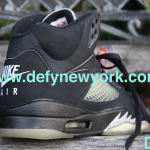 Released in 2000 they were relatively easy to obtain, I should know I arrived to pick up my two pairs at around 1 P.M. and walked out with NO ONE in the store. My how times change. The 3m, the Nike Air, the nubuck, the OG air units make this one for the ages. As most of us know that when they re-retro’d this shoe there was a 23 stitched into the side, gone was the Nike Air off the back and the blinged out 3m. The one thing I have to give to the last retro over the 2000 version was the fit. The OG’s from 1990 had a narrow toe box on them, as did the version with the 23 on the side. The 2000 release was a little more roomy on the sides which you may or may not have liked, and the midsole comfort on the 2000 version was better. This colorway came in a box with both Michael Jordan’s face on it. Anyhow, prices have been falling lately for them, people worried they will crack apart, or just lack of desire for them, in any case if your a fan of the Jordan V they are one of those must have releases. Below are pictures from the DeFY. New York Vault enjoy pics of this legendary release.