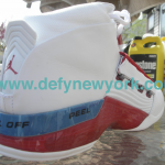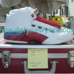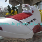 I’ll never forget the look of the old woman sitting next to me when I took these sneakers out of a briefcase. Then she mumbled to either me or herself sneakers “In a briefcase? Thats crazy!” Crazy indeed, and so was the 200.00 retail price. These were the first sneakers that I know of that came with a DVD as well. The Jordan XVII is legendary, good looks plush ride. The lace covers were a waste (as most found them very difficult to get on and off, especially with your foot in the shoe) but I did like the lace locks. The biggest gripe? The leather used for the upper. After only a few wears these would begin to look like they had been used for an entire year (not something you look for in a 200.00 pair of sneakers). Also, the soles of the shoes (which came up by the midsole (white area)) attracted dirt like no ones business and yellowed fairly easy. Nonetheless, the sneaker is a work of art. They run true to size, and prices for these have climbed in the 3-400 dollar range. Check out one of the original ads above and check out pictures from the DeFY. New York Photo Vault above. Enjoy 🙂