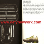 Retro’d AGAIN in 2004 this air max 95 features large air units, but gone is the cotton material on the inside lining. All around these things look and fit true to the original although obviously not as good as the previous generations 95’s. Below are pictures from the DeFY. New York Photo Vault enjoy