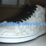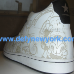 In 2006 Converse did a collaboration with Graffiti artist Mike Giant showcasing his artwork laser etched into both the Converse Pro Leather and the Converse All star. This was an urban release, and the quality was very nice. They came in a standard converse box, with a special key chain. If your into Graffiti these will not disappoint. If your looking for a set they have become slightly difficult to come by, but fit true to size. One key issue you should check for when looking for a set in your size is to make sure the laser etching is not faded. This was an issue (especially with the Converse all stars) laser etching. Below are pictures of the white pair from the DeFY. New York Photo vault enjoy!