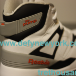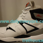 Today we take a trip back to 2004. The premier edition Reebok Pump is a sneaker legend. Extra High top, 2004 was the first year this shoe saw a retro.Sales of the shoe were so stale in 2004 you wondered if Reebok would ever bring them back, and luckily for us they did. In late 2009, to celebrate the 20th anniversary of the pump, Reebok brought this shoe back in all its original glory (even the original box design). The 20th anniversary edition is much more true to the original than the 2004 release in terms of all around shape although both are almost dead on. The toe box on the 2009 version resembles the original much more closer than the 2004 version. The 2004 version’s pump mechanism works better, and the 2009 version has more padding. Going a half size up is recommended. Below are pictures of the 2004 retro that was not re-issued in 2009. Pictures are from the DeFy. New York Photo Vault enjoy!