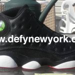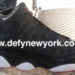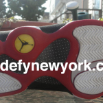 When I first saw the Jordan XIII on the wall of Champs Sports I laughed. I couldn’t imagine how they thought putting a hologram of Michael Jordan on the shoe looked good. Well, about 5 months later after seeing them over and over again, I realized why, unfortunately for me by the time I realized just how good they really looked they were non existent in any of the stores so a hunting I would go. Living on Long Island in 1998, it was april so I was still 16 and thus had no car. A friend and I hopped on the LIRR and to Queen’s we went (Jamaica Ave. to be exact.) There I found my White, black red XIII’s looking as beautiful as ever, it was a good day. About 2 months later they would make a trip to the Puerto Rican Day Parade, and lets just say BAD DECISION. The red suede mixed with the rain was not good. They still looked good but not fresh, so hunting I would go for other colorway’s, the next of which would be the white, black and then eventually the black and red. This colorway is beautiful. You see, the retro’s don’t do it justice. The retro’s are much more narrow, are missing a lot of the padding, aren’t as wide in the back, and the comfort in the midsole is not there. If your in the market for some XIII’s pick up the OG’s they are very durable and your chances of them not being wearable are slim. Anyhow, below are pictures of the original Black/True Red/White Jordan XIII from the DeFY. New York Photo Vault enjoy and stay tuned for pictures of other colorways.