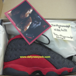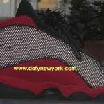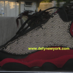 So back in 2004 Jordan Brand decided to bring back the Black/Red color way of the Jordan XIII. At the time, the shoe was selling on the secondary market in the 250-450 range depending on size (for the original model). On release day there were long lines, and the shoe sold out pretty fast. Although most novice collectors were ecstatic about the fact of owning a pair of Black Red XIII’s a lot of collectors were unhappy about the fit finish and quality. Ok, materials aside, the craftsmanship was just down right poor. My true size was to snug and if I went a half size up it was to big. The shoe was very narrow looking compared to its OG counterpart, the tongue was much much higher and disproportionate to the shoe itself. Fortunately, unlike the flint’s these do not have the issue with the brown look glue leaking out of the mid sole that the Flints had. The hologram on the retro’s was not as vibrant as the originals. If you want to check out pictures of the originals click here Below are pictures from the DeFY. New York Photo Vault of the 2004 version enjoy!