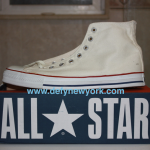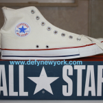Your probably thinking, what is so special about the 1990′s Converse Chuck Taylor? Well for one, this shoe was made before Nike bought Converse. Two, they are made in the U.S.A. Last, but most important, aside from that little made in the USA print on the heel and on the insole, the quality on these is much better than a Chuck Taylor manufactured after 2003 (when Nike purchased the company and moved production overseas). The insole is thicker, the canvas is thicker, the shoe is much more substantial. They are not as comfortable as say a Chuck Taylor made in the 1970′s (black labels) but they are still much more comfortable than a Chuck Taylor made today. If you wear Converse all star’s, and have the opportunity to pick up a pair of these for a good price do it. Below are pictures from the DeFY. New York Photo vault enjoy!