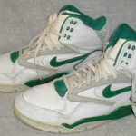 With the popularity of the Yeezy’s and other high top offerings from Nike and competing brands, A GOOD retro of these would definitely make a statement. Back in 1990, these bad boys were comfy and good looking. They came in ton’s of color ways. If your looking for a wearable pair these days its gonna be rough. Also note you’ll most likely have to go a half size up because of the narrow toe box. A lot of people think the narrow toe box is a bad thing but its actually feels good because you get a good secure fit. Nike used a lightweight smooth synthetic leather back in the 80’s/90’s and they tend to stretch a little more than shoes today. Check out pics below of the original Nike Air Force V. Vote below whether you think Nike should bring these back!