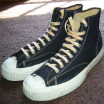 P.F. were canvas shoes made by B.F. Goodrich and Hood Rubber Co. The P.F. stood for “posture foundation” (It was supposed to put more “spring in your step”). Some 70 years and countless high end imitations the P.F. Flyer (which is what they were named starting in 1937) can still be found in shops around the world now owned by New Balance. Check out pictures below courtesy of totalmodness (eBay).