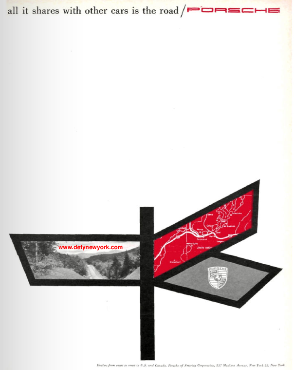 Porsche builds some of the finest cars out there. Unlike some luxury competitors, Porsche’s quality hasn’t gone down the drain over the past decade. Visit WWW.PORSCHE.COM for some of their latest offerings and take a trip back with the 1959 ad below.