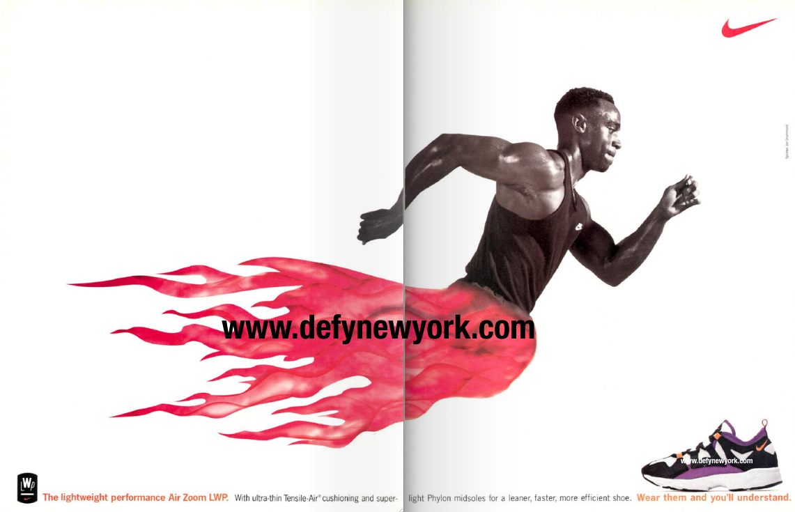Jon Drummond is a world champion sprinter. He picked up a gold medal at the 2000 Sydney olympics in the 4×100 metres relay, and a silver medal at the 1996 Olympic games in Atlanta. Drummond was also the face for the Nike Air Zoom LWP a lightweight running shoe. If your looking for a pair of these today just know they run snug, so go a half size up from what you would wear in an air force 1. Take a trip back to 1995 below.