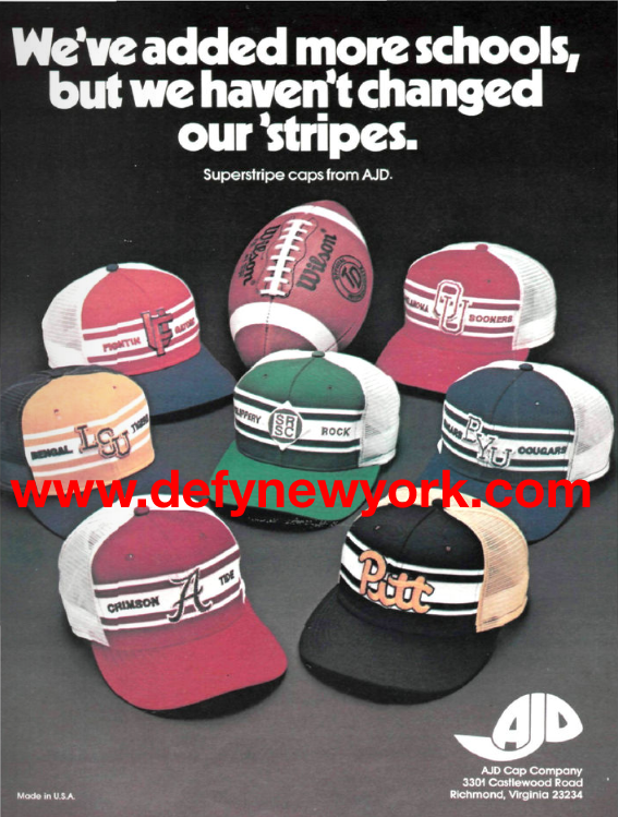 AJD Cap Company Superstripe College Snap Back Hats 1978