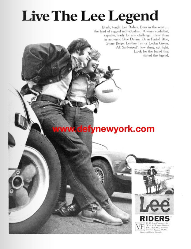 FashionFashion (1970-1979)Fashion (Lee)Lee Riders Jeans 1970 Lee, owned by VF Corporation (the largest apparel company in the world), was first produced in 1889. For more info on Lee check out their wiki page or visit lee.com For now, check out this dope 1970 ad below. Share this: Click to share on Facebook (Opens in new window) Facebook Click to share on Pinterest (Opens in new window) Pinterest Click to print (Opens in new window) Print Click to share on X (Opens in new window) X Click to share on LinkedIn (Opens in new window) LinkedIn Click to share on Tumblr (Opens in new window) Tumblr Click to email a link to a friend (Opens in new window) Email Click to share on Reddit (Opens in new window) Reddit