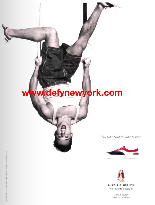 The Hush Puppies brand was founded by Wolverine in 1958 to appeal to post war suburbia. Wolverine developed a practical method of pigskin tanning for the US military, so chairman Victor Krause came up with the concept of a “casual pigskin shoe” to appeal to these post war consumers. The brand was popular in the 50’s and 60’s, but in 1994, the brand (down to sales of 30,000 per year) was almost axed by Wolverine, almost. Although sales were down, Hush Puppies had become popular in the clubs and bars of downtown Manhattan, where hipsters were buying them up at mom and pop shoe stores. In 1995, a few influential fashion designers featured Hush Puppies in their collections and Wolverine went on to sell 430,000 pairs (they sold four times that amount the following year). Sixteen years later, after a huge comeback, Hush Puppies is going strong and still pumping out the goods. To check out their current lineup visit hushpuppies.com. For now check out this 1998 ad below.