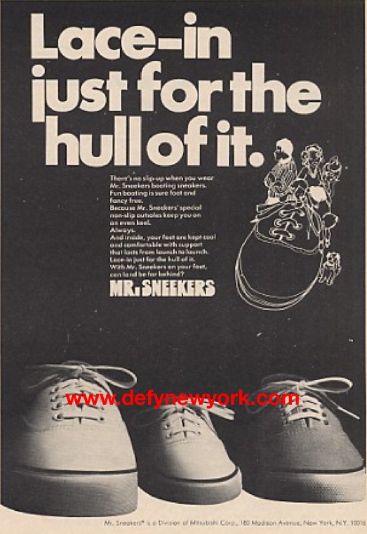 Mitsubishi has made everything from TV’s to fighter planes, but what many don’t remember is that Mitsubishi was part of the shoe game via the brand “Mr. Sneekers”. Initially, this brand was trademarked by Mitsubishi International Corp. in 1962 and registered in 1964. As of 8/19/1984 the trademark expired and was never renewed (for more info check out trademarkia). Take a trip back to 1969 with Mr. Sneekers below!