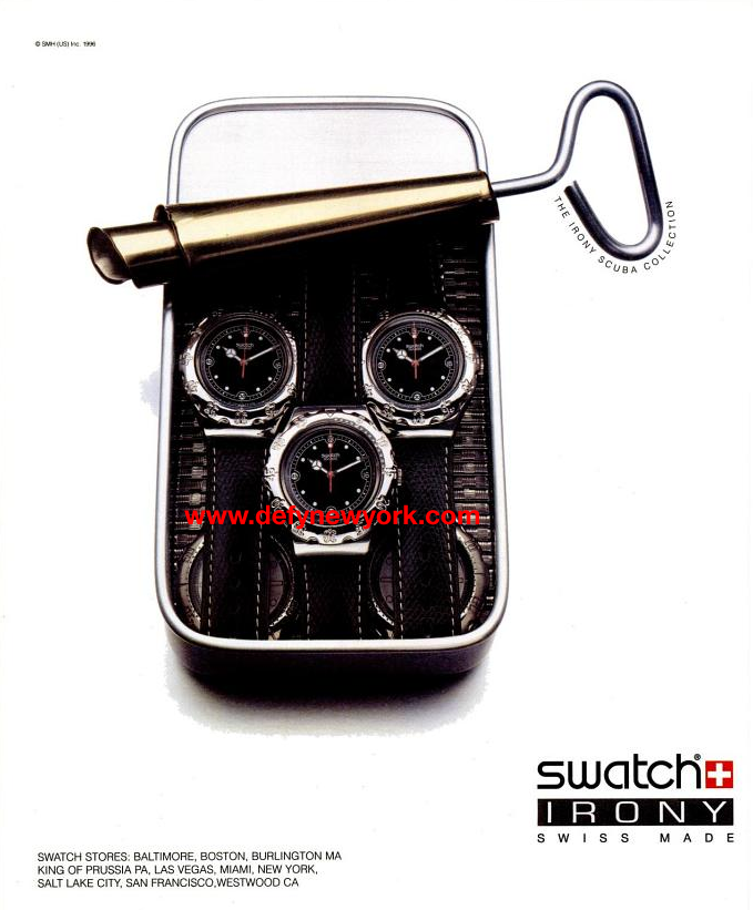 Accessories (Watches)FashionFashion (1990-1999)Fashion (Swatch)Men's FashionSwatch Irony Scuba Collection Watches 1996 Swatch has always made some clean affordable watches coupled with some pretty dope ads. Take a trip back to 1996 below. Share this: Click to share on Facebook (Opens in new window) Facebook Click to share on Pinterest (Opens in new window) Pinterest Click to print (Opens in new window) Print Click to share on X (Opens in new window) X Click to share on LinkedIn (Opens in new window) LinkedIn Click to share on Tumblr (Opens in new window) Tumblr Click to email a link to a friend (Opens in new window) Email Click to share on Reddit (Opens in new window) Reddit