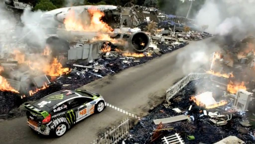 “DC and Ken Block present Gymkhana FOUR: The Hollywood Megamercial. GYM4 surpasses the high-production style of Gymkhana TWO with even more spectacular effects shot in the backlots of Universal Studios, California. Filmed over the course of five days, director Ben Conrad