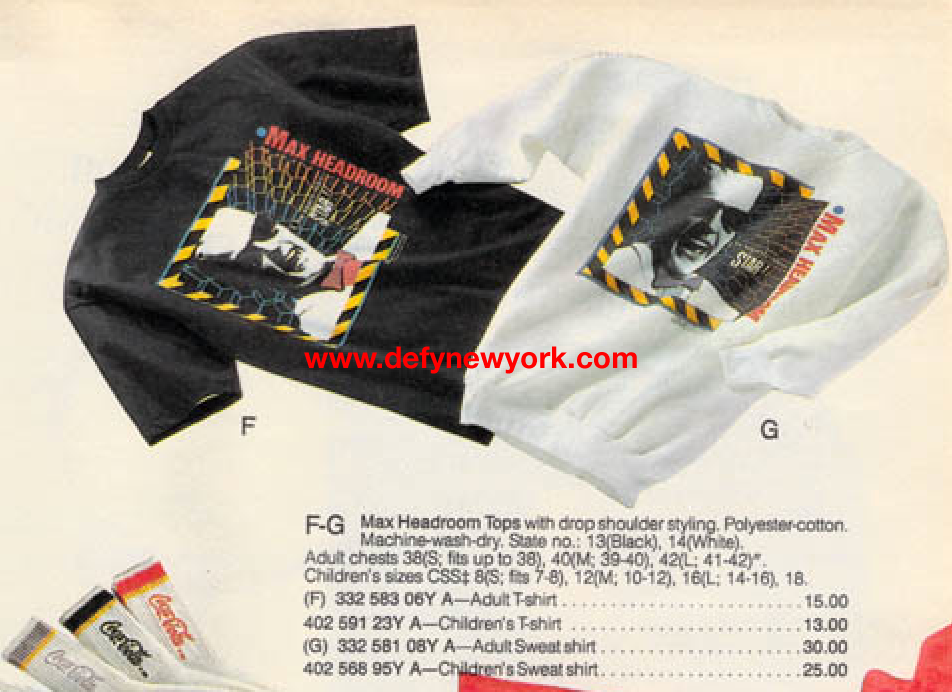 FashionFashion (1980-1989)Fashion (Coca-Cola)Men's FashionCoca Cola Max Headroom Shirts 1987 For those of you that don’t remember Max Headroom, check out the commercial below. For those that do, relive your youth below. Share this: Click to share on Facebook (Opens in new window) Facebook Click to share on Pinterest (Opens in new window) Pinterest Click to print (Opens in new window) Print Click to share on X (Opens in new window) X Click to share on LinkedIn (Opens in new window) LinkedIn Click to share on Tumblr (Opens in new window) Tumblr Click to email a link to a friend (Opens in new window) Email Click to share on Reddit (Opens in new window) Reddit