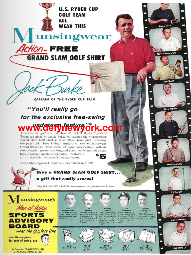 Munsingwear Grandslam Golf Shirt Free-Swing Underarm 1957