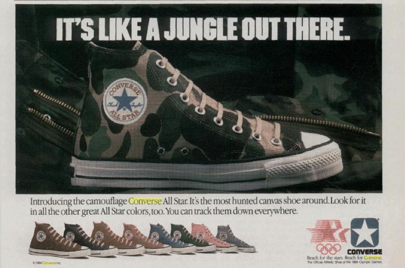 Sneakers (1980-1989)Sneakers (Converse)Sneakers/Boots/Shoes Releases, Reviews, ArchiveConverse Camouflage All Star Made In The U.S.A. 1984 To check out the 2009 Converse All Star Camo Addict (Japanese release) CLICK HERE. Share this: Click to share on Facebook (Opens in new window) Facebook Click to share on Pinterest (Opens in new window) Pinterest Click to print (Opens in new window) Print Click to share on X (Opens in new window) X Click to share on LinkedIn (Opens in new window) LinkedIn Click to share on Tumblr (Opens in new window) Tumblr Click to email a link to a friend (Opens in new window) Email Click to share on Reddit (Opens in new window) Reddit