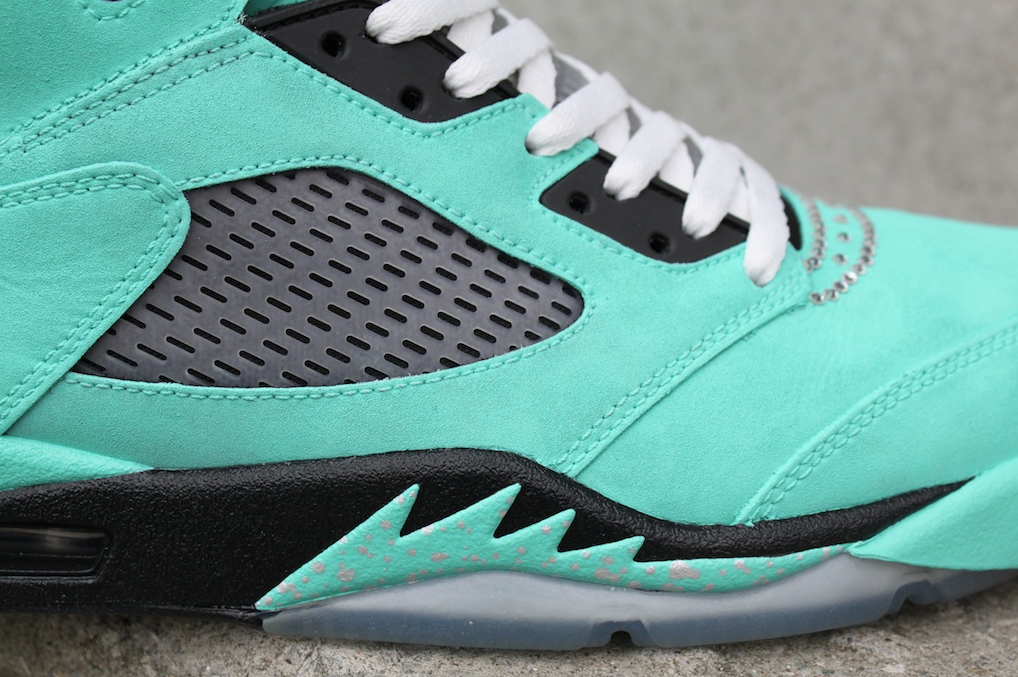 Customizations are usually hit or miss, and then sometimes theres a grand slam. Well, these folks are a grand slam. What your looking at is the custom Tiffany Jordan V’s (based on the Diamond Supply x Nike SB collab some 6 years back). These are not available at any Nike Stores. For the entire story on this collab head over to proofculture.com