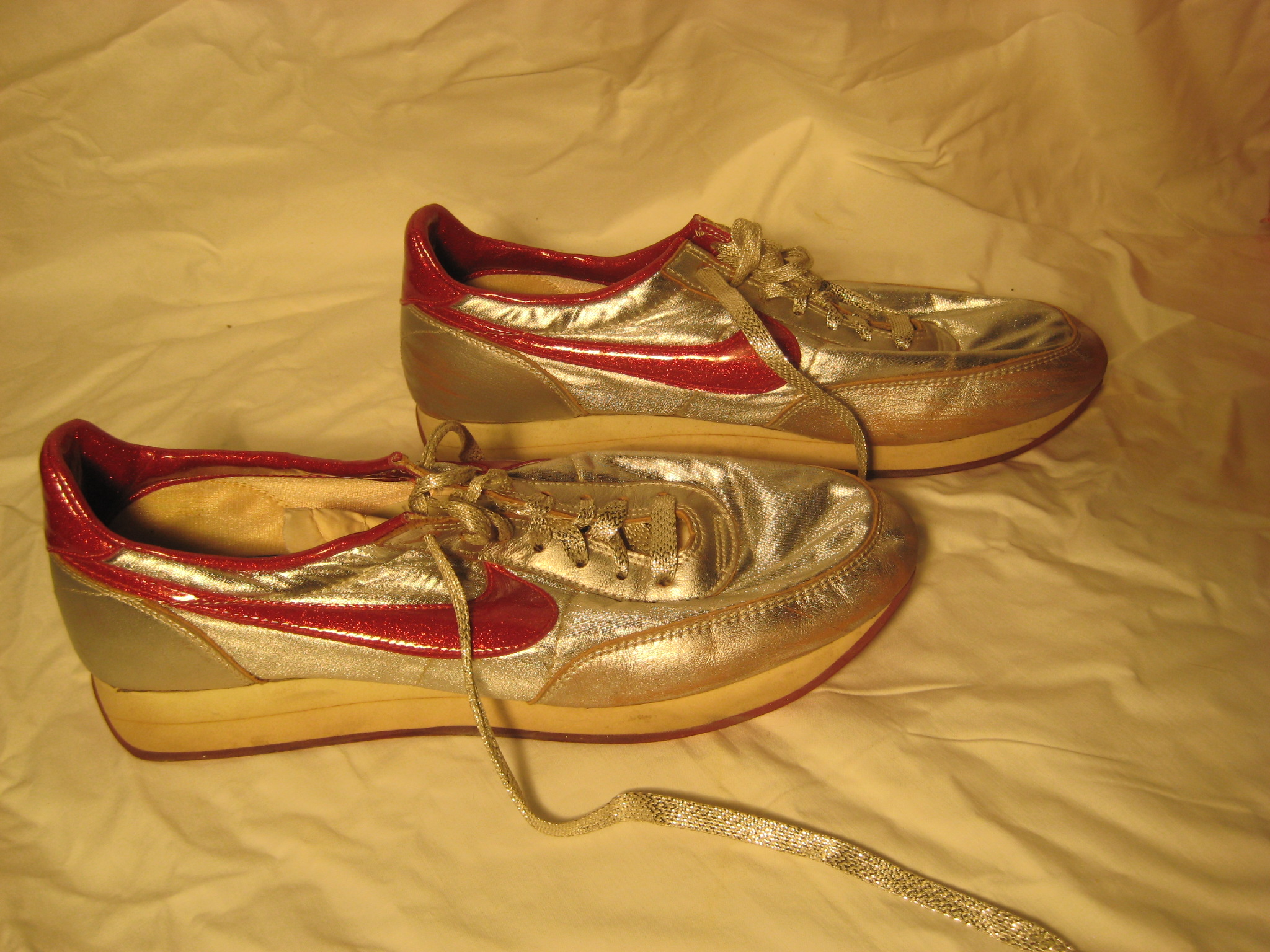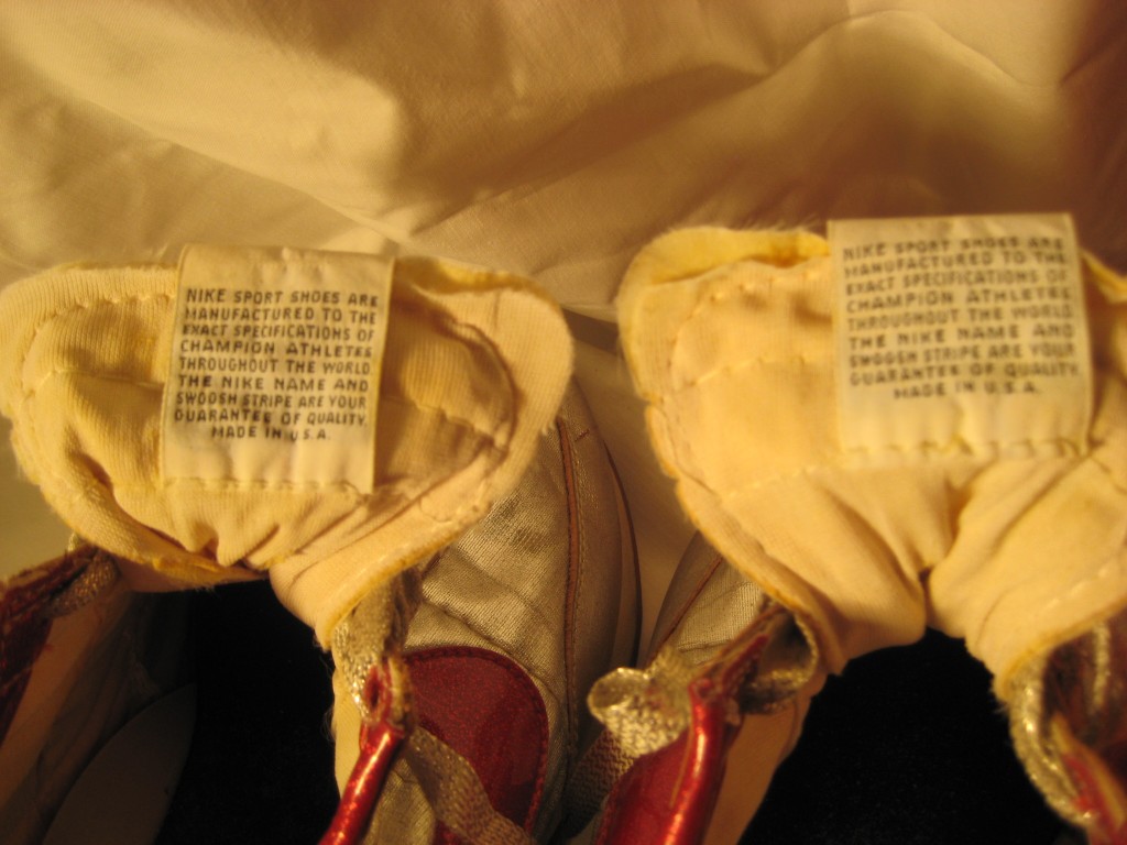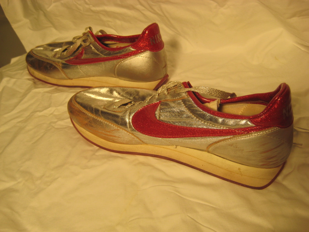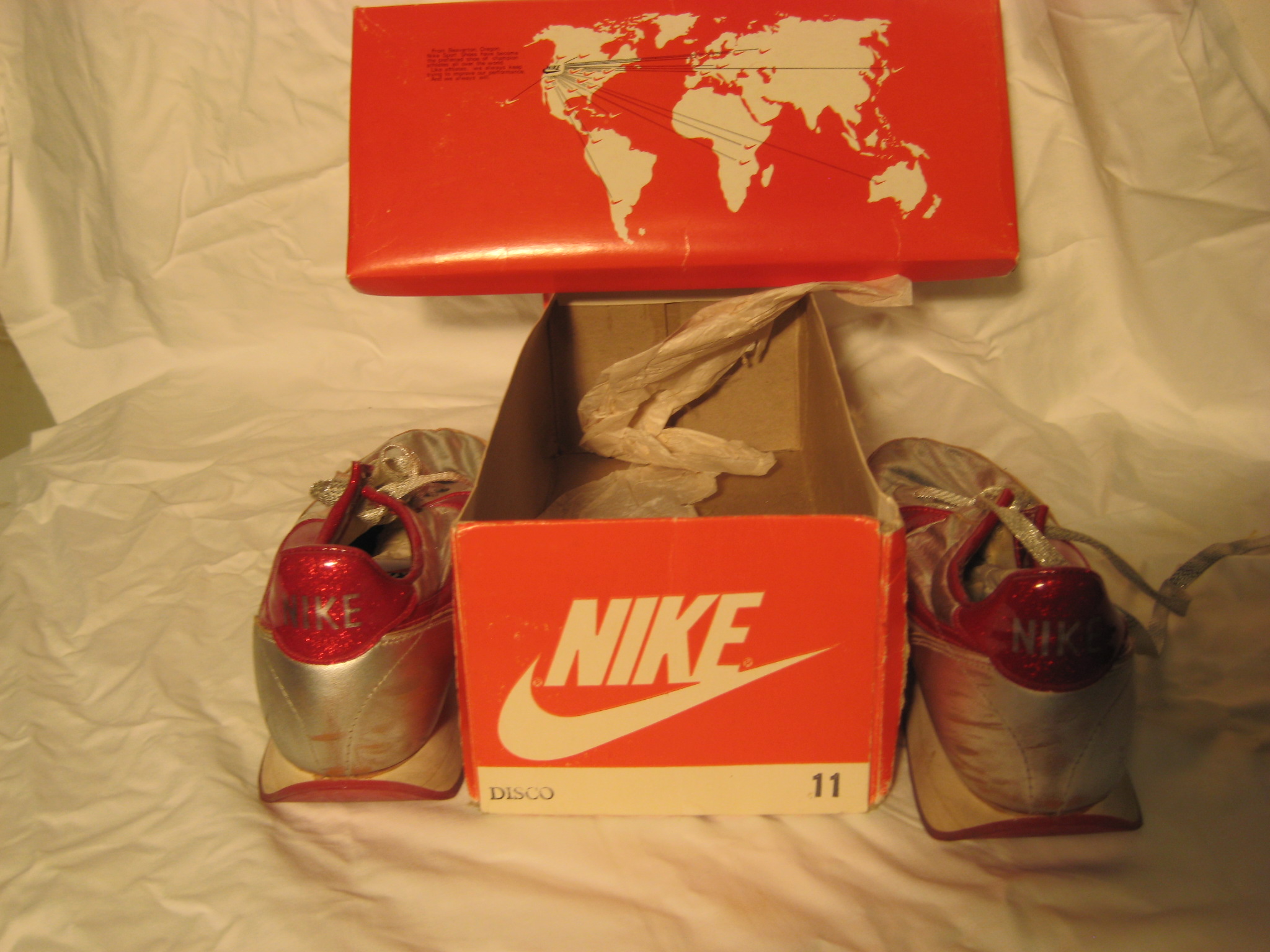 Available for sale is a very rare pair of Nike Night Track Disco Sneakers from the late 70’s early 80’s. Made in the USA and available in a size 11. Included is the original box and wrapping paper. No cracking, no dry rot. Only issue is the stuffing in the tongue is falling apart (common with shoes from this time). Please contact us at defynewyork@gmail.com with all inquiries.