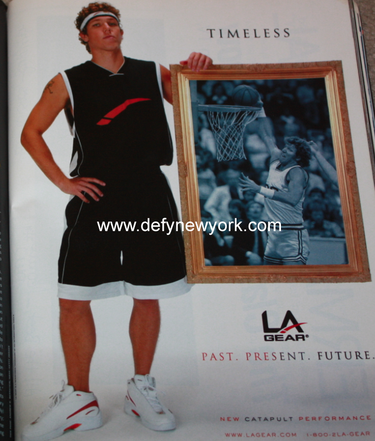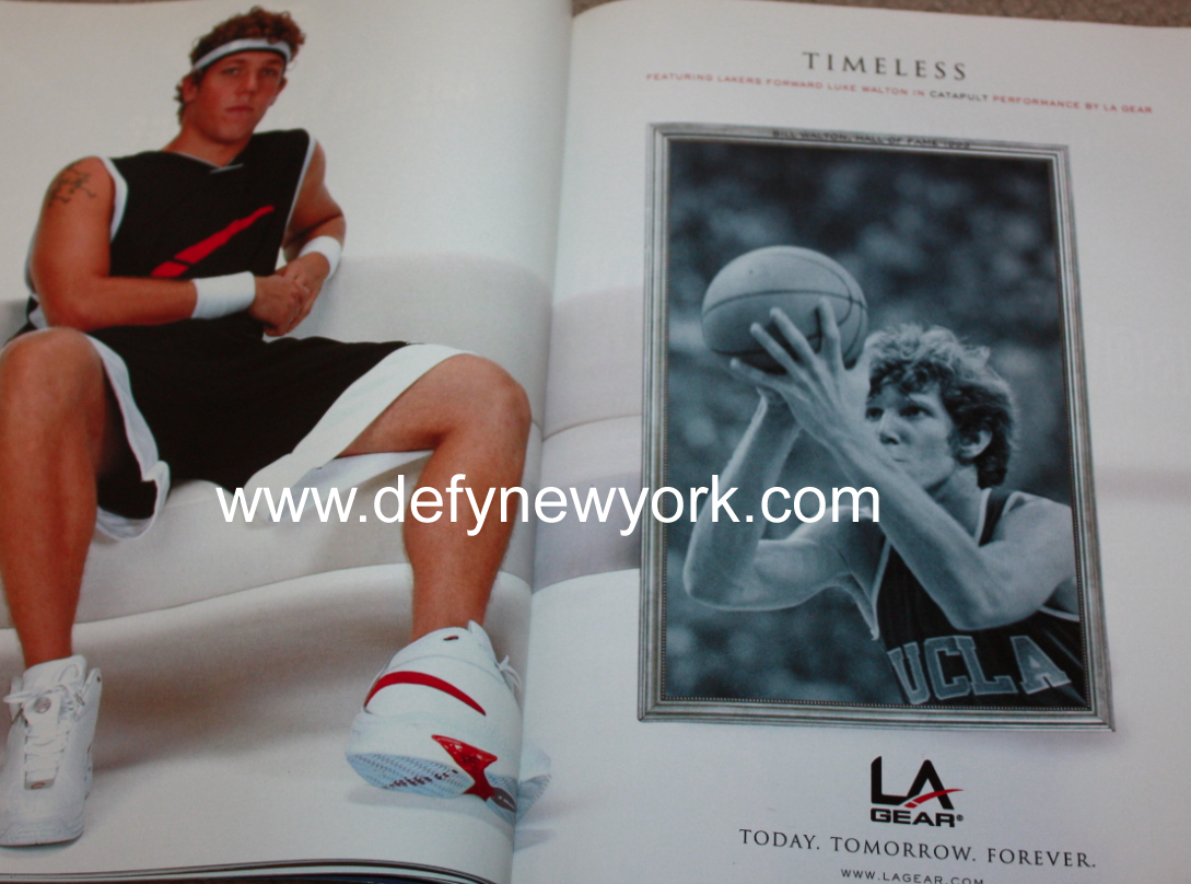 In 2003, L.A. Gear, the company known for endorsements with Paula Abdul, Kareem Abdul Jabbar and Michael Jackson to name a few, was trying their hand at a then second comeback. One of the first athletes to ink an endorsement deal during this time was then rookie Luke Walton (son of basketball legend Bill Walton). His signature shoe featured technology from one, if not the best, LEGITIMATE basketball shoes that L.A. Gear ever created, the Catapult. Released in 1991 and endorsed by Karl Malone, the Catapult was engineered to redirect the energy of each jolt, knock or thud into an “uplifting” experience by redirecting the shock of impact into a powerful recoiling action. The shoe was also supposed to protect your body by minimizing stress to the knees, ankles and lower back all while providing stability to your foot and preventing roll. To sum it up, the original Catapult shoe was bad-ass. Fast forward to 2003 and the shoe lost some of the flare that made the original what it was. Still, the design trend at the time was very minimalistic across all brands and the Catapult was a decent looking shoe following this same trend. Luke Walton went on to win two championships with the Lakers but unfortunately, the Catapult was eventually discontinued and there hasn’t been any talk of a retro or newer model since. Take a trip back to 2003 above!