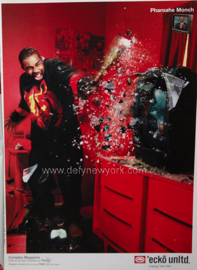 FashionFashion (2000-2009)Fashion (Ecko UNLTD)Men's FashionEcko Unltd Pharoahe Monch 2001 Aside from being very popular in the earlier part of the 2000’s, Ecko had some pretty dope ads. Check out this one from 2001 above! Share this: Click to share on Facebook (Opens in new window) Facebook Click to share on Pinterest (Opens in new window) Pinterest Click to print (Opens in new window) Print Click to share on X (Opens in new window) X Click to share on LinkedIn (Opens in new window) LinkedIn Click to share on Tumblr (Opens in new window) Tumblr Click to email a link to a friend (Opens in new window) Email Click to share on Reddit (Opens in new window) Reddit