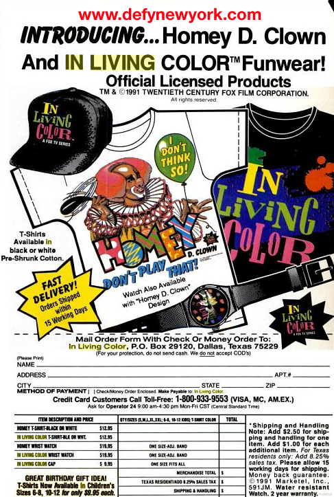If your into vintage fashion a Homey D. Clown shirt is very necessary. In the early 90’s at the height of the shows popularity, you could pick up a Homey D. Clown shirt with an In Living Color watch, or hat to match. Damn I miss the 90’s, check it all out above!