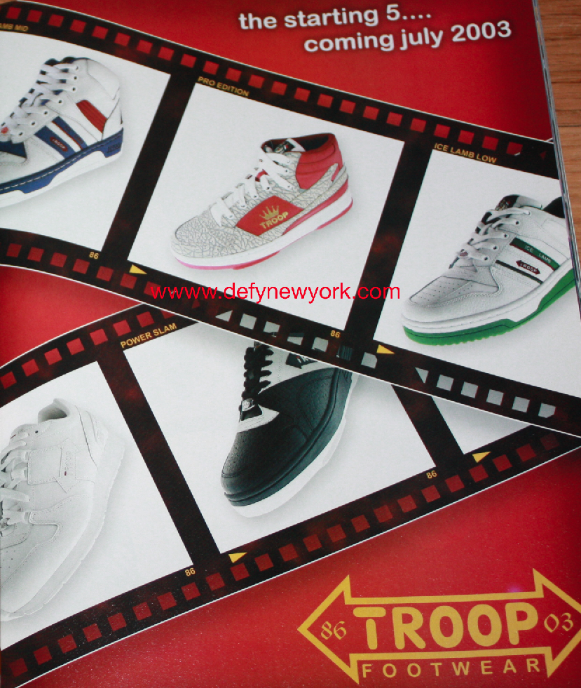 When TROOP returned in 2003 shoe heads were pleasantly surprised. The only problem? Quality was ok and offerings were slim. The Lamb Mid (which took design cues from the Adidas Rivalry) and the Pro Edition were two of a handful of standouts but it wasn’t enough to sustain their footwear in the U.S. Check out their first ad during their 2003 return above!