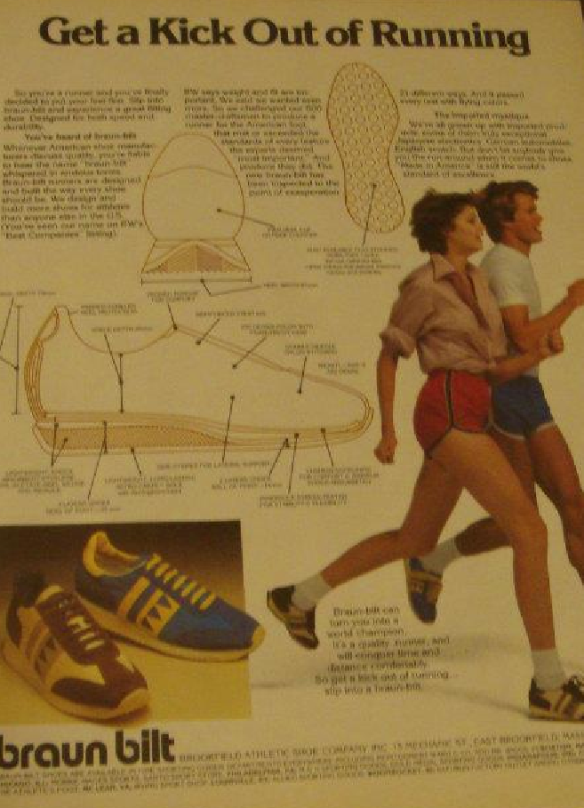 Its always interesting to see the chain of events that accompany some of the names that have been lost to time. Founded by the Brookfield Athletic Shoe Company in 1981, the trademark for Braun Bilt was cancelled in 1988. Three years before the cancellation, Brookfield was purchased by Hyde Athletic Industries (the same company that bought Saucony and eventually changed their name to Saucony). Why did Hyde Athletic Industries buy the company? Well, heres a theory. Canvas shoes like Keds were huge in the late 80’s and Brookfield Athletic Shoe Company held the trademark for PF Flyers (a popular canvas shoe from the 50’s and 60’s). Since Saucony more than likely wanted to capitalize on the Canvas shoe trend and they couldn’t buy Keds or Converse who better to acquire than Brookfield (to acquire the PF Flyer name which already had history)?. Three years after taking over Brookfield Saucony re-released PF Flyers. Take a trip back with Braun Bilt above!