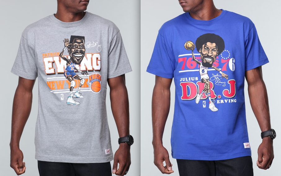 With a Converse Pro suede and Ewing 33 Hi Retro right around the corner your probably trying to figure out what your going to wear with these classics. Well, Mitchell & Ness has you covered on the T shirt end. Back for 2012 are retro Caricature Tees. If you grew up in the late 80s and early 90’s then you know good and well about the popularity of these shirts (you probably sported the shirts with some choked up sweat pants and an oversized snapback). AVAILABLE NOW.