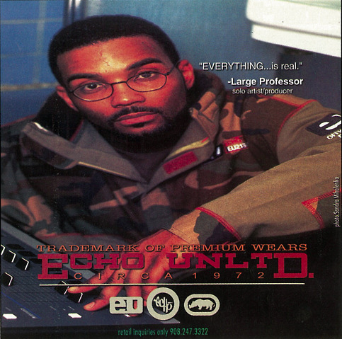 FashionFashion (1990-1999)Fashion (Ecko UNLTD)Men's FashionEcho (Ecko) UNLTD. Large Professor Ad 1996 Another rare mid 90’s ad from Echo (who later changed their name to Ecko UNLTD for legal reasons). Take a trip back to 1996 above with Large Professor. Via WordToTheMother Share this: Click to share on Facebook (Opens in new window) Facebook Click to share on Pinterest (Opens in new window) Pinterest Click to print (Opens in new window) Print Click to share on X (Opens in new window) X Click to share on LinkedIn (Opens in new window) LinkedIn Click to share on Tumblr (Opens in new window) Tumblr Click to email a link to a friend (Opens in new window) Email Click to share on Reddit (Opens in new window) Reddit