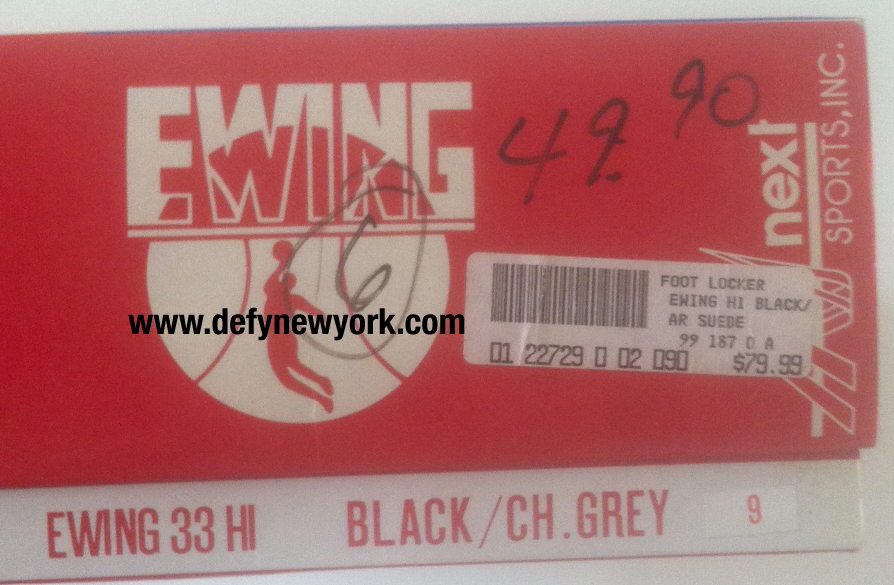There has been some debate as to what exactly the retail of the 33 HI was. Some discounted the shoe as a bargain brand shoe found for 50-65 bucks while others have stated it was a mid range shoe in the 70-85 dollar range and still others have said the price was in the 90-100 dollar range. Keep in mind, some stores in the early 90’s may have chosen to sell the shoes at a slight discount while others charged over MSRP;their were no rules. One store however has pretty much put this topic of debate to rest, and that store is Footlocker. As you can clearly see the retail price of the original Ewing 33 HI was 79.99. Aside from putting the debate to rest it also shows that a brand can make an accurate retro and not overly inflate the price of the shoe. PROPS to Ewing Athletics.
