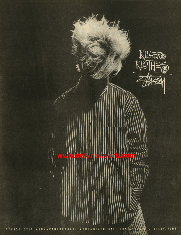 Hmmm so you button your shirt all the way up and rock an 80’s synth pop cut? Your on some new ish aren’t you? No, your really not. While I love the wild synth pop cuts of the 80’s and even more so that they’ve been discovered by an entirely new generation don’t get all high and mighty. Your father or for that matter your grand daddy has about 25+ years on you. That aside, this 1987 ad from Stussy is bang up to date and just reflects as a whole why the brand has connected with so many generations. Sure, they fell off in the late 90’s, but the fact that they were able to reintroduce the attitude and youthful soul that brought them success in the 80’s and early 90’s and come back with a vengeance shows that classic and good design never goes out of style. Take a trip back to 1987 above!