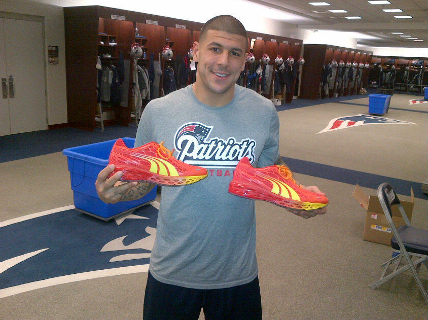Known primarily for their presence in the soccer market (or as the rest of the world refers to as futbol)/football) Puma announced today the signing of the talented 23 year old New England Patriots TE Aaron Hernandez to a two year contract. The signing of Hernandez is reminiscent of when Puma signed the legendary NFL quarterback Joe Namath to a contract some 40+ years ago. DeFY. New York caught up with Aaron to talk Puma.