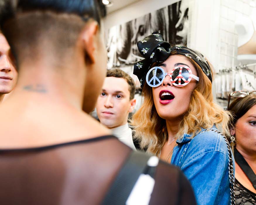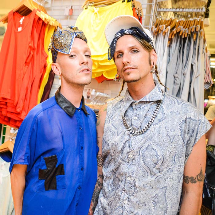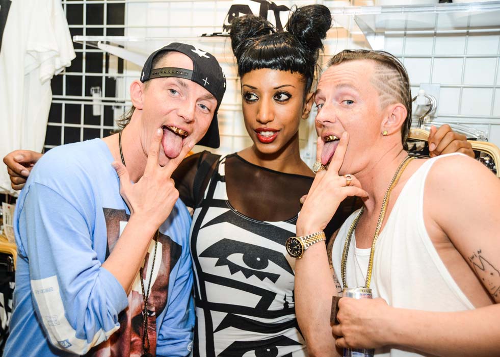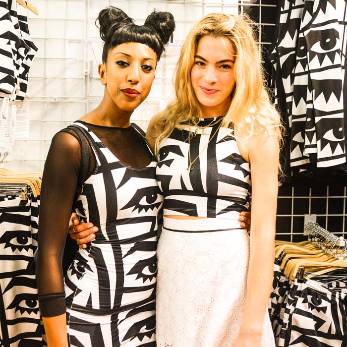 Fans and friends of KESH showed up at the East Houston St American Apparel store to celebrate the launch of a 12 piece capsule collection. The CEO and Founder of AA (Dov Cherney) made a rare guest appearance alongside the ATL Twins, Ben Pundole, Chelsea Leyland, Dev Hynes, Jenne Lombardo, Kilo Kish and Natalia Kills to name a few. The collection consists of a mixture of both mens and women’s pieces incorporating classic silhouettes with KESH’s shapes and self portraits in her sig black and white color scheme with a limited run only available on the site and in select cities (including LA, London, Paris, Tokyo, Stockholm, Berlin and Seoul) with prices ranging from $34 for a hat to $88 for a jacket. KESH and AA came strong with these pieces which could easily be framed and put in a gallery as they could be worn. They also conjure up memories of the late 80’s early 90’s house/dance/Hip Hop fashion scene with the collection looking like something you might have spotted on the members of C+C Music Factory,Daisey Dee or even Salt N Pepa for that matter. Check out fliks from the night below (photo’s via Sydneyreising)
