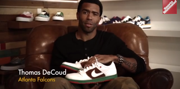 Extramustard.si.com (Sports Illustrated’s pop culture site) has been running a series of humor video’s starring athletes such Atlanta Falcon’s Thomas DeCoud (who by the way owns over seven hundred pairs of sneakers (yes, seven HUNDRED pairs and counting)). Check him out in his “Rescue Second Hand Shoes” bit