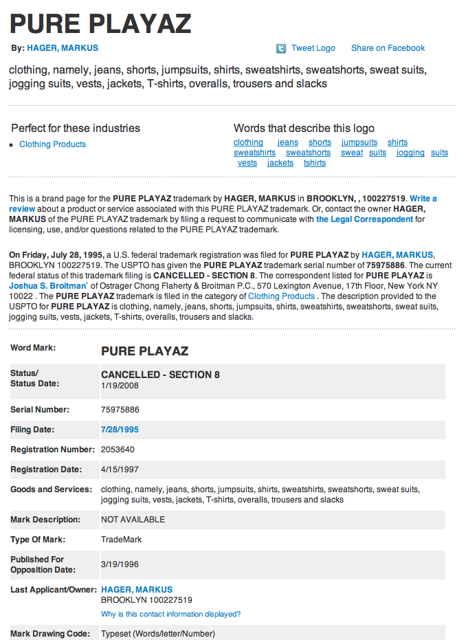 Swizz Beatz has come a long long way in his pursuit of fashion harmony. Tall tees, jerseys, baggy jeans etc. it was all a go in 2003 if you were into the hip hop scene. If you weren’t, then there was a possibility (slight) that you wore a more tailored look with some Puma driving shoes but still, a very slight chance. Pure Playaz was trademarked in 1995 and cancelled in 2008 completing a very honorable 13 year run and a place in hip hop clothing history. Take a trip back to 2003 above!