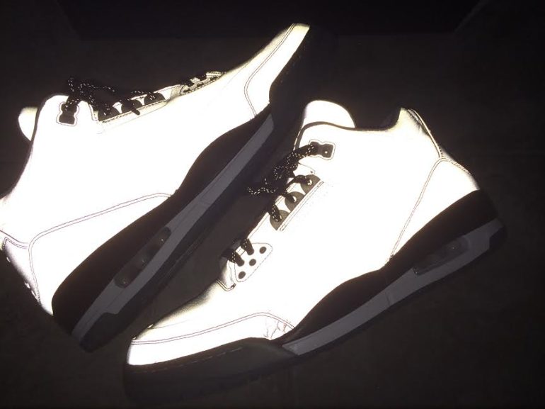 A lot of times when brands start messing around with iconic shoes like the Jordan III the outcome isn’t always good and with only so many shoes one can wear in a lifetime, many opt to exclusively rock OG colorways. The flipside to that are the dudes that will only rock new colorway’s of older models and then there’s the dudes that will not only buy both OG colors and new colorway’s, but take things up a notch and scoop up all the PE versions of a particular model. Unfortunately for you, all those people will be your competition for the Jordan 5 Lab 3 come this Saturday. Inspired by the reflective tongue of the Jordan V, the 5 Lab 3 model features an upper completely covered in a 3m reflective coating, embossed logos in the upper, a high quality soft leather sockliner, clear outsole and eyelets as well as a toe box shape that vintage heads will drool over. Complete in a holographic box this is one pair of Jordan III’s you will not want to pass up. Throw them on with anything and its go time. Make sure to check out some fliks below as well as the video and let us know if you will be copping!