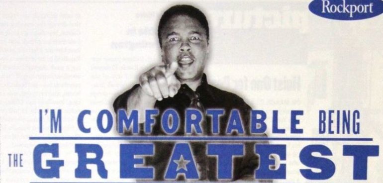 While many might correlate Muhammad Ali with a more youthful Adidas Originals there was a time where the G.O.A.T. was repping for Rockport (who at the time was a subsidiary of Reebok (Reebok wasn’t owned by Adidas yet)). The collab was set up to raise funds for the Muhammad Ali Center which at that time wasn’t slated to open for another two years. Seven pairs of autographed Everlast boxing gloves and autographed photos were auctioned off in a silent auction at several Rockport Concept Stores across the country and to this day, the Muhammad Ali Center is still going strong. Take a trip back to 1999 below!