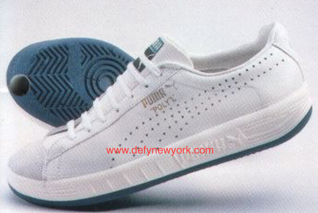 The Puma Poly provided for more cushioning than other shoes in their lineup yet they still had solid traction. They featured a two density polyurethane sole and a full grain leather upper. The Canvas version provided for a design break up that gave the shoe more character and more breathability as well as a Rod Laver vibe. Take a trip back below!