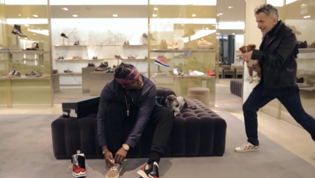 Pusha T (sporting some dope Officine Generale, Dolce & Gabanna crochet Sweatpants, Margiela Sneakers), and his son CJ Thornton aka the flyest maltipoo in the game ( making his on film debut sporting Fifi & Romeo) joins Barneys Creative Ambassador, Simon Doonan to star in a Barney’s video for this past April Fools’ Day.