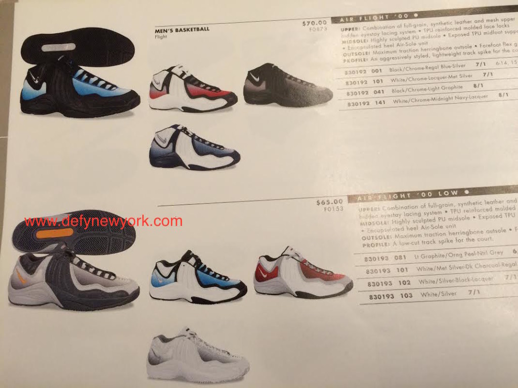 If you loved the gradient fade of the Nike Air Max Plus and didn’t have enough bread for the Nike Air Garnett III then the Air Flight 2000 was the way to go. Described as an “aggressively styled lightweight track spike for the court” this mid range ($70.00 for the mid and $65.00 for the low) basketball shoe featured a combination of full grain, synthetic leather and mesh upper, internal hidden eye stay lacing system, TPU reinforced molded lace locks, highly sculpted PU midsole, exposed TPU midget support shank, Encapsulated heel Air Sole unit, maximum traction herringbone outsole and a forefoot flex grooves. Take a trip back below!
