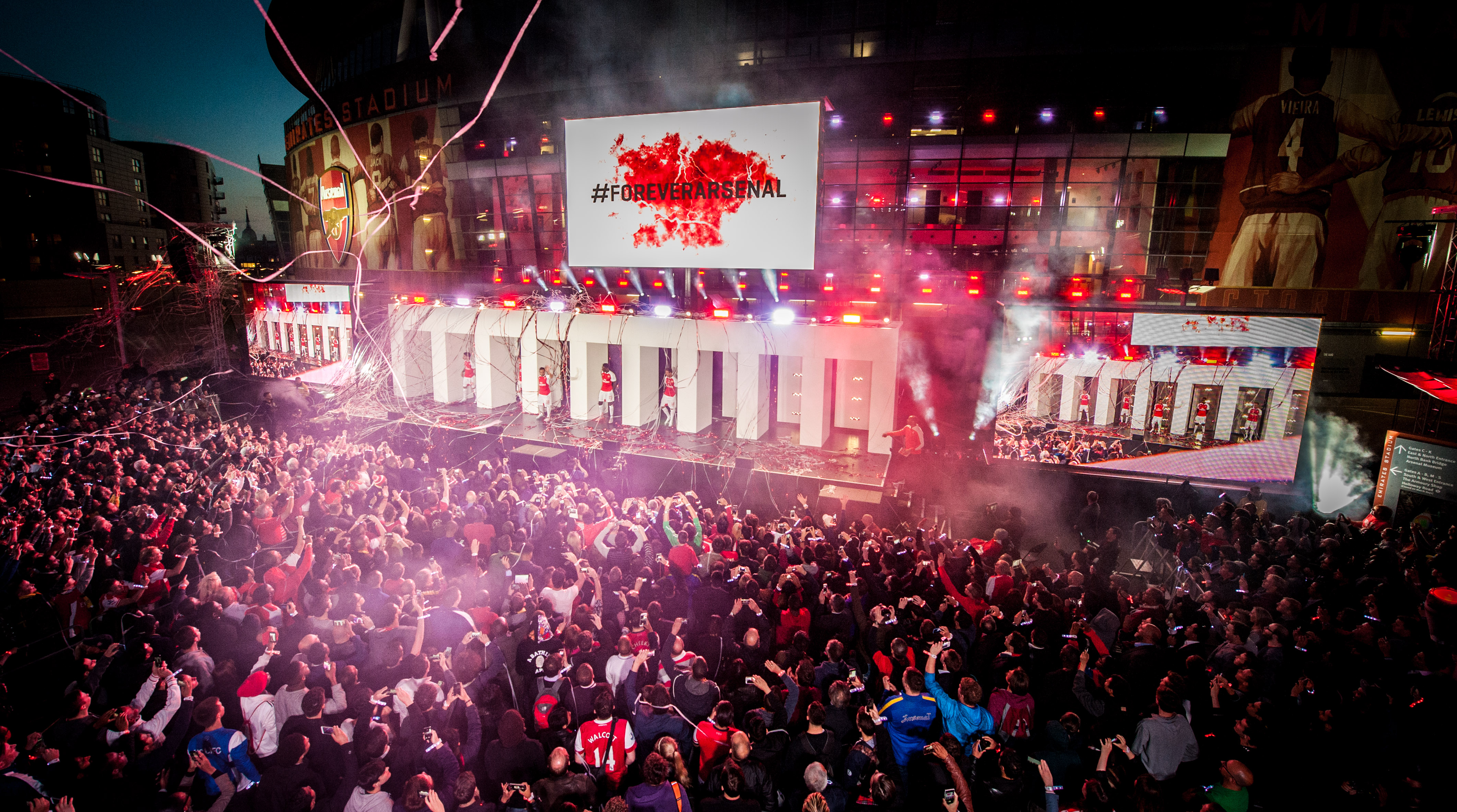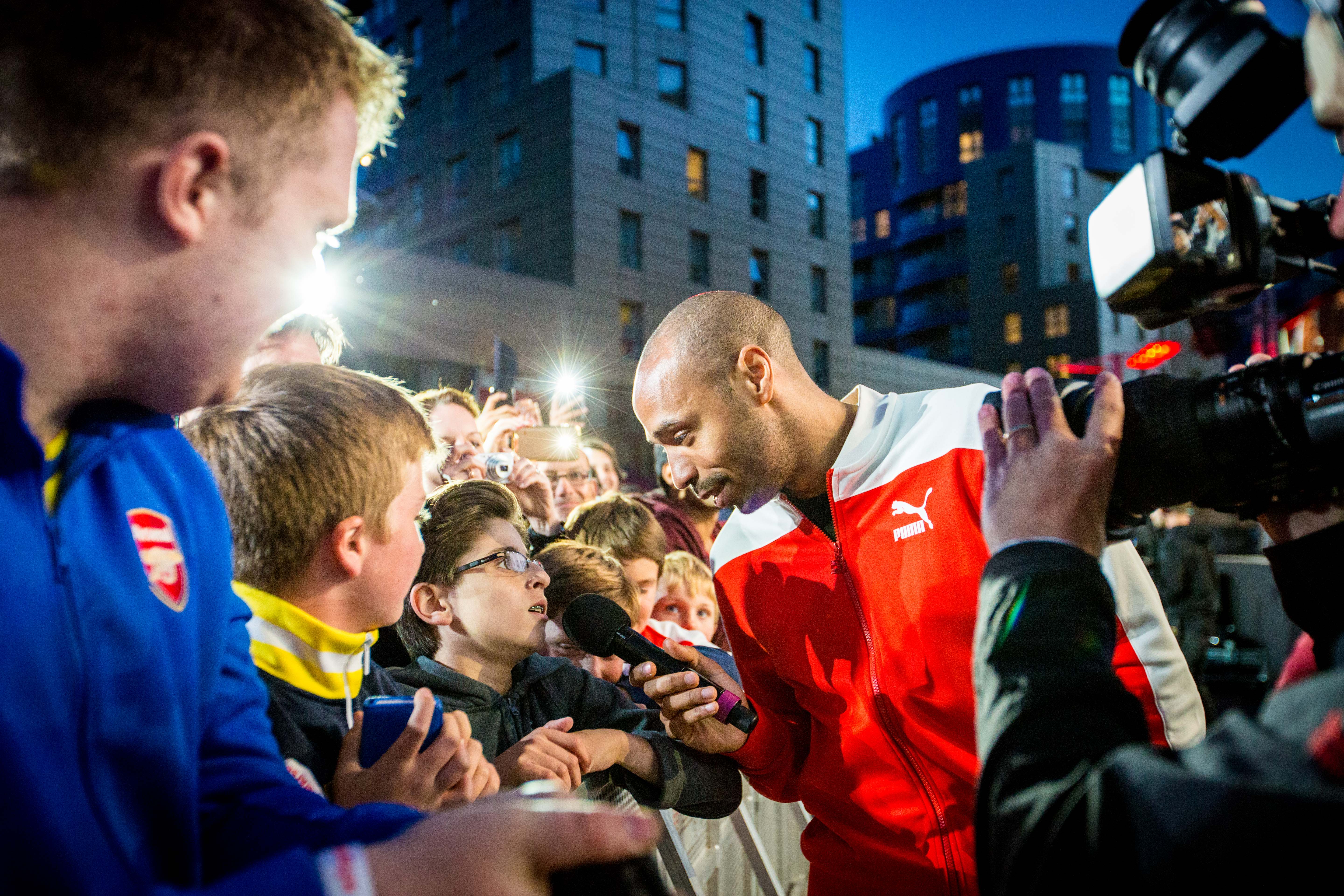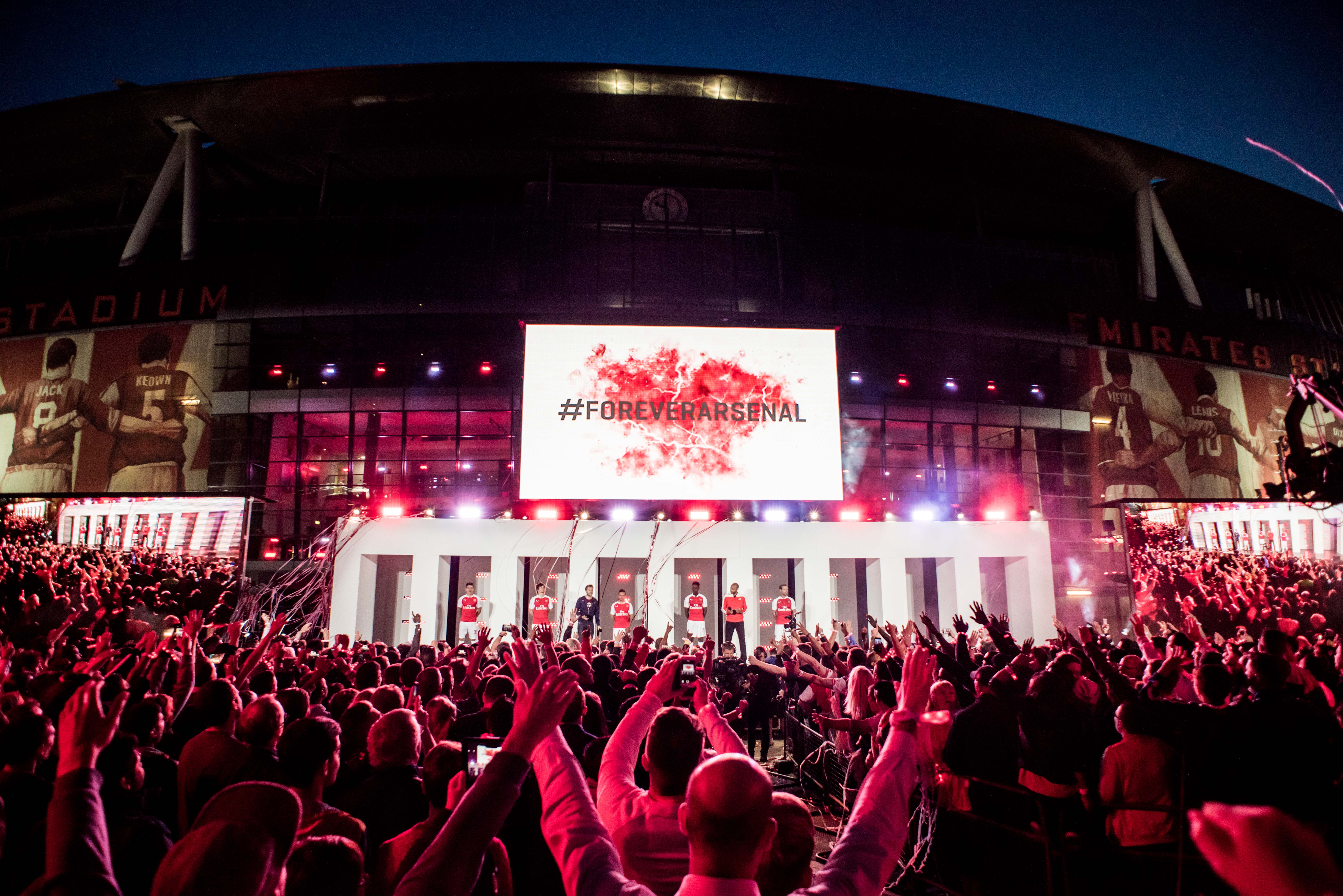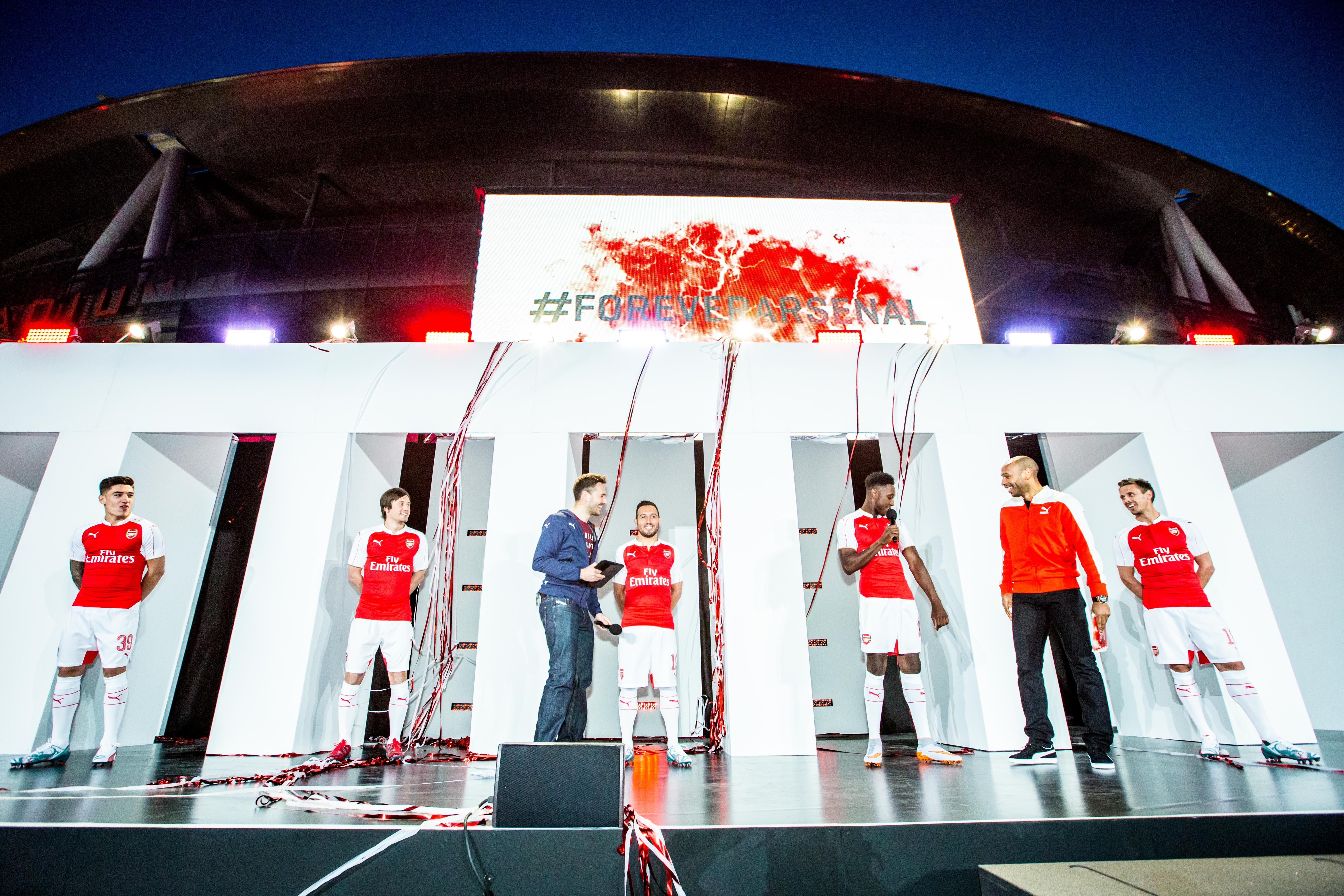 Puma officially unveiled the new 2015/2016 Arsenal home kits to a live crowd of over 1000 fans outside of Emirates Stadium. Club legends Thierry Henry and DJ Gilles Peterson amped the crowd and Arsenal first team players took the stage to share the nights festivities with the crowd. The home replica kit and full collection of fan wear will be available in stores on June 25th and the home replica kit and training line is available for pre-order online now at PUMA.COM and ARSENALDIRECT.COM. Check out some fliks from the night below!