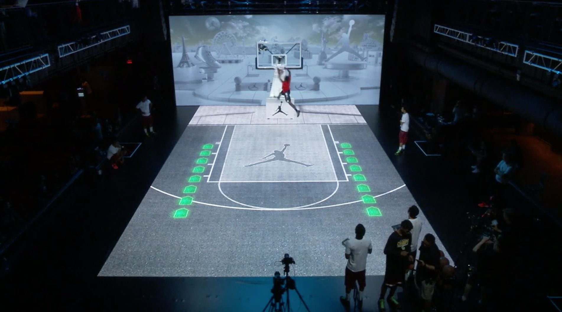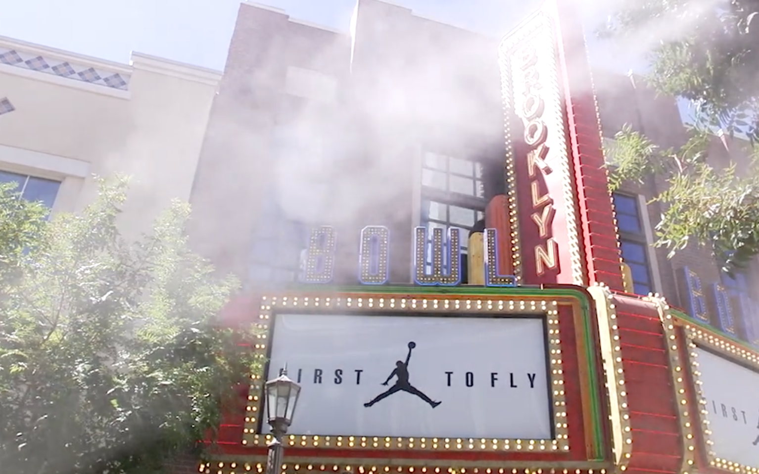 The “First To Fly” experience (held at Brooklyn Bowl) kicked off thursday and continues through tonight. The space’s main attraction is the “Kaboom Room,” a virtual dunking experience that displays the power of each participant’s dunk on a massive LED screen and court. Additionally, AAU participants and fans can experience the latest in Jordan Brand performance footwear with Super.Fly 4 trialing, a consumer store featuring the latest performance products and Marvin the Martian apparel, plus a premium players’ lounge including amenities such as massages, a barber shop, video games, and plenty of bowling – even with Jordan Brand athletes. Outside the venue, the public can catch a glimpse of Marvin’s spaceship crash landing as part of his search for Blake Griffin and the Super.Fly 4.