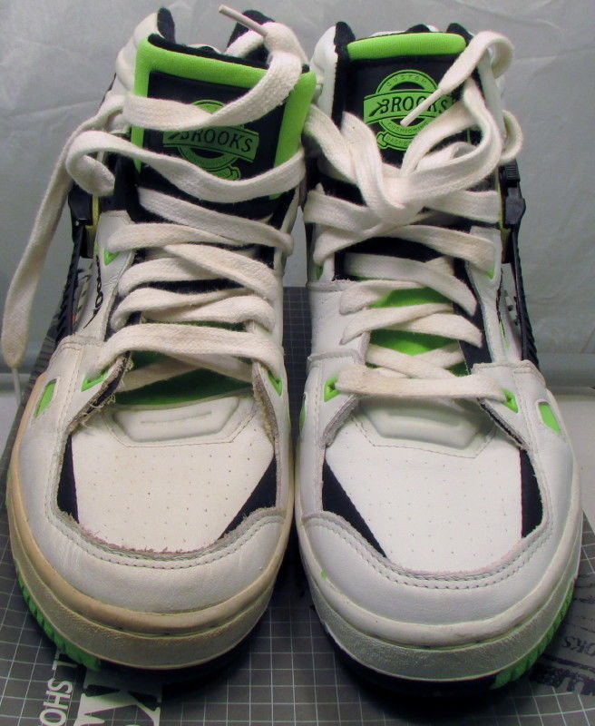 Gangsta, lit, Swaggadocious whatever your here today gone tomorrow slang preference is one things for sure, if you never considered looking at a Brooks basketball shoe (not even the Brooks Highlight) then these might change all that. Released sometime in the late 80’s, the Brooks Statement sure made one heck of a statement (see what I did there?). Looking more like an unreleased prototype and they featured Hydro Flow (which appeared to be a direct response to Nike Air) and “special features” like a positive lateral transfer spine for correct pronational alignment, a kinetic wedge and a Brooks patented entry system (which was to provide for a more custom fit). The big story here however, is that these looked an awful lot like an early non Nike release of the Nike Air Flight Huarache. Take a trip back below, vote on whether you think Nike took some inspiration for their Flight Huarache Basketball shoe from these and if you want them add these to your collection now via eBay.