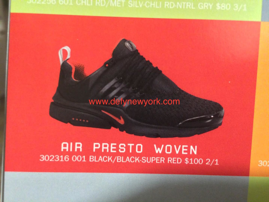 One of several color way’s of the woven Presto, this black and red pair was by far one of the classier color ways and at $100 retail a real deal. It may be hard to understand now, but I remember these things on discount for around 40 bucks nearly 7 years later! With 2015 being the triumphant return of the Presto it would be a beautiful thing if Nike brought back these woven gems. For now, check them out below and reminisce!