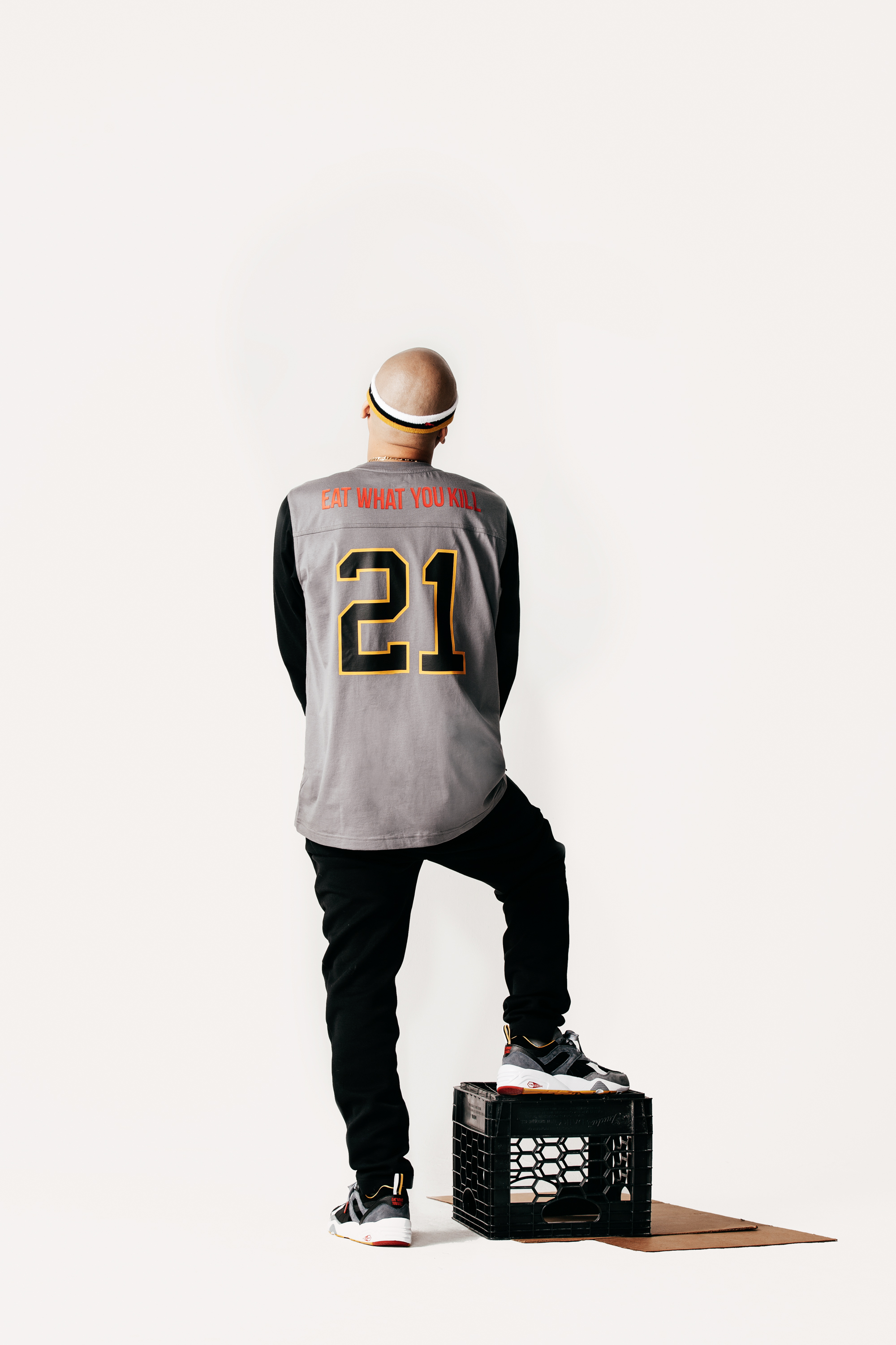 Frank says “I’m a product of my environment. At the same time, as a young man I was focused on not allowing my environment stop me from doing something meaningful with my life,” says Frank The Butcher. “This collection represents just that, pushing forward and not subscribing to ‘can’t.’ Eat What You Kill is a way of speaking to kids from similar backgrounds; telling them go out and get it.”