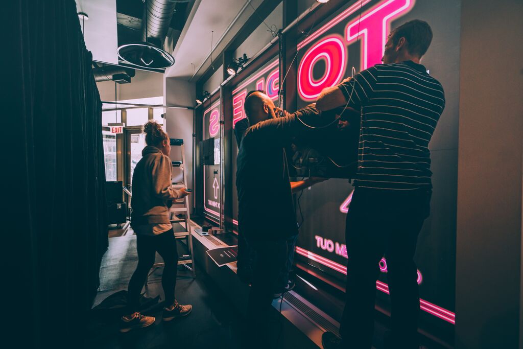 Havas Chicago has transformed its window-lined lobby into a full-fledged “Peep Show,” complete with flashing pink neon lights that beckon passers by to check out “TOPLESS GIRLS.” Once curious viewers look inside the peepholes, they are confronted with the below sobering facts about breast cancer hand-painted on sleek nude black mannequins: